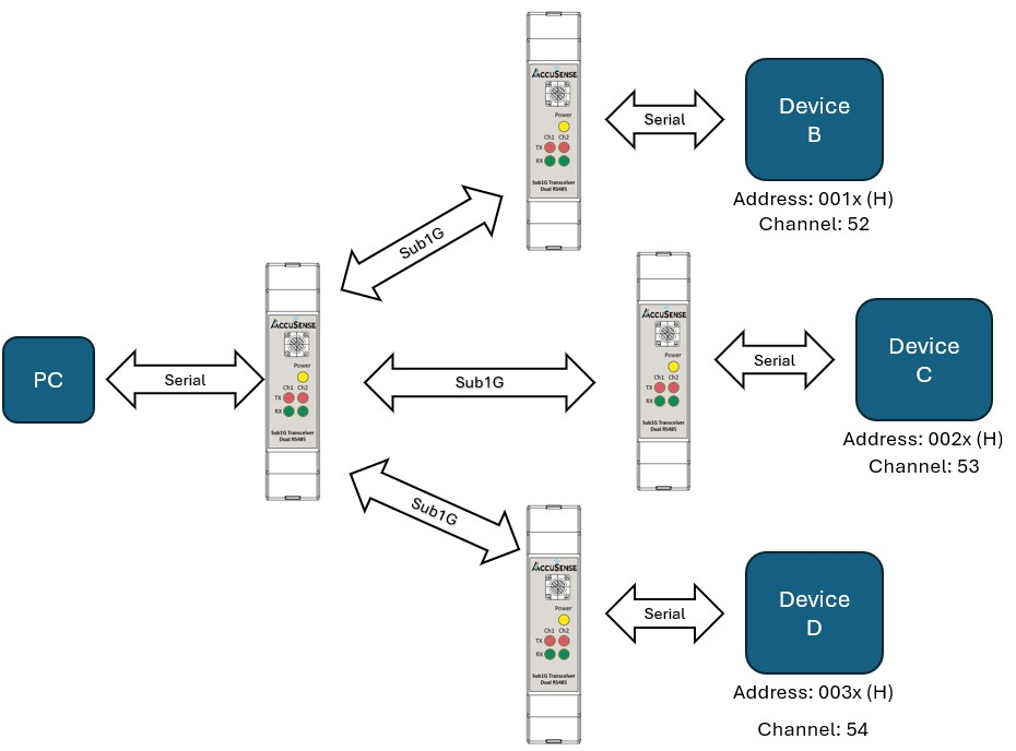 操作者可以将控制台配置成目的地址为 255,该设备与其他节点进行广播发送和广播接收,这些节点必须以相同的速率和相同的信道进行广播。