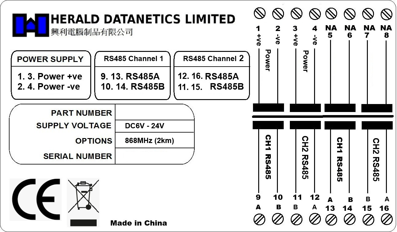 模块包含2个RS485/422通道,支持Modbus,以便与常规RS485设备进行远距离通信。